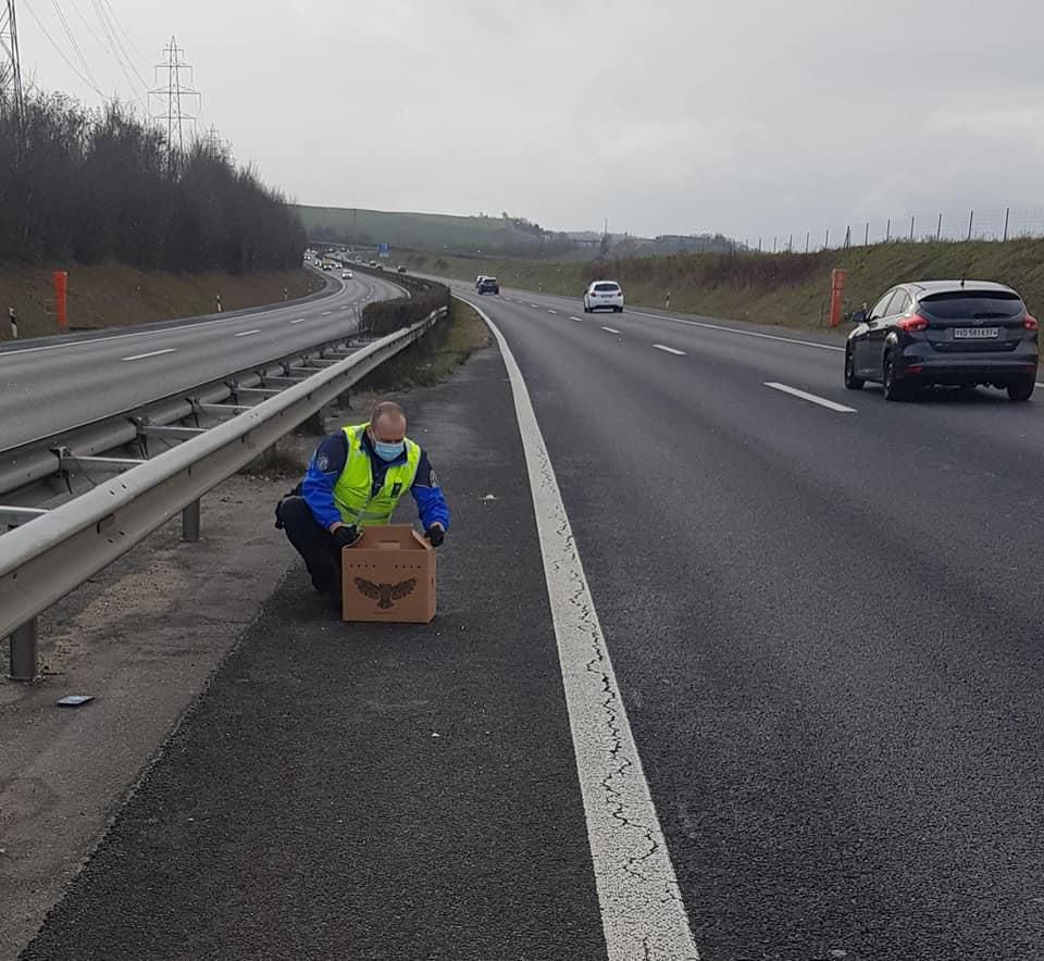 Opération sauvetage pour une buse blessée sur l’autoroute